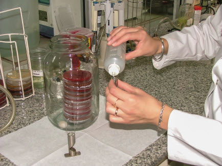 El uso de velas para consumir el oxígeno en el interior de las jarras de cultivo conlleva el riesgo de dañar las placas de Petri o el vidrio del frasco con la llama.